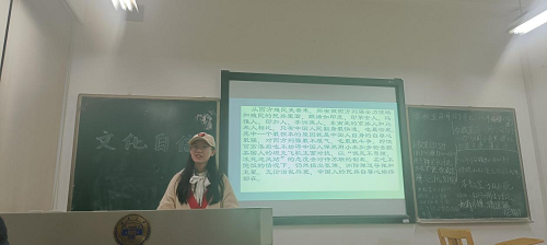 班内首先通过“四个自信”引入对文化自信的学习,坚持文化自信就是要激发党和人民对中华优秀传统文化的历史自豪感,在全社会形成对社会主义核心价值观的普遍共识和价值认同。