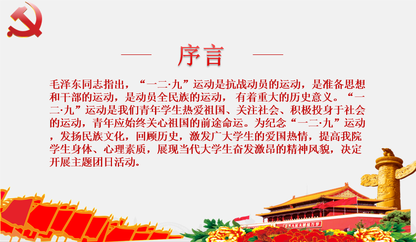 毛泽东同志曾指出,“一二·九”运动是抗战动员的运动,是准备思想和干部的运动,是动员全民族的运动,有着重大的历史意义。为纪念“一二·九”运动,发扬民族文化,回顾历史,激发广大学生的爱国热情,提高JAVSB