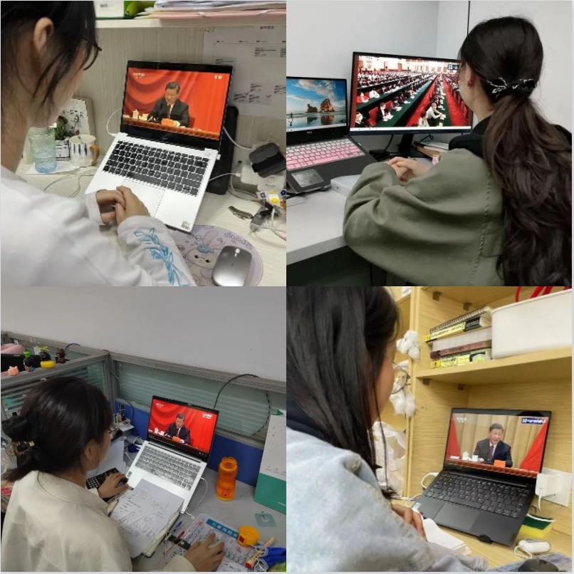 师生以线下和线上相结合的方式收听收看现场直播,共同聆听学习习近平总书记重要讲话。