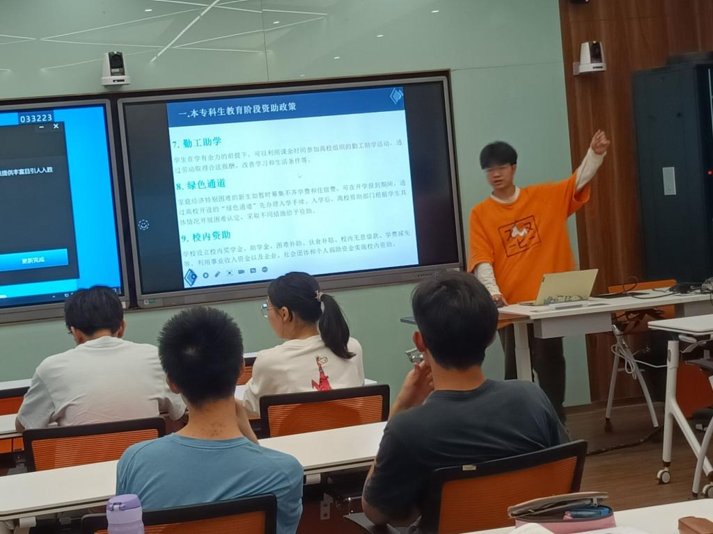特色资助工作介绍进行了详细的讲解,学院的特色资助工作主要包括学生资助管理中心、获奖获助学生团队建设和公益岗志愿服务活动等,学院深入推进资助育人,给同学们提供了温暖与帮助。在班会结尾,晏佳文鼓励同学们努力学习,学会感恩,用自己的努力回馈国家和学校的帮助。