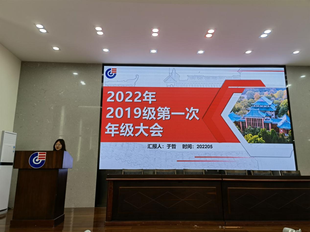 本科2019级于化工院D区报告厅召开2022年第一次年级大会。本次会议分为三个流程:对上学期成绩进行分析;关于2019级学生未来去向统计、分析及对策还有下阶段工作思路。本次会议由本科2019级辅导员于哲老师主持,2019级全体学生参会。