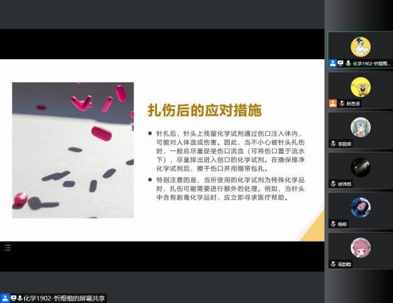 最后,忻同志以2018年里昂大学研究生尼古拉斯在做实验过程中不小心被含二氯甲烷的注射器扎伤,导致手指肌肉局部坏死的案例,分析实验室中针头的使用规范,并说明如果不慎扎伤时应采取的措施,以提醒党员关注实验室安全问题,注重实验流程的规范性,避免危害人身安全的严重事件发生。