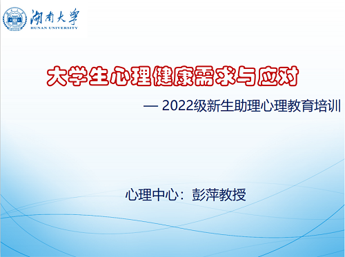 心理中心彭萍教授通过腾讯会议面向全校新生助理开展了“大学生心理健康需求与应对”主题心理教育培训,JAVSB