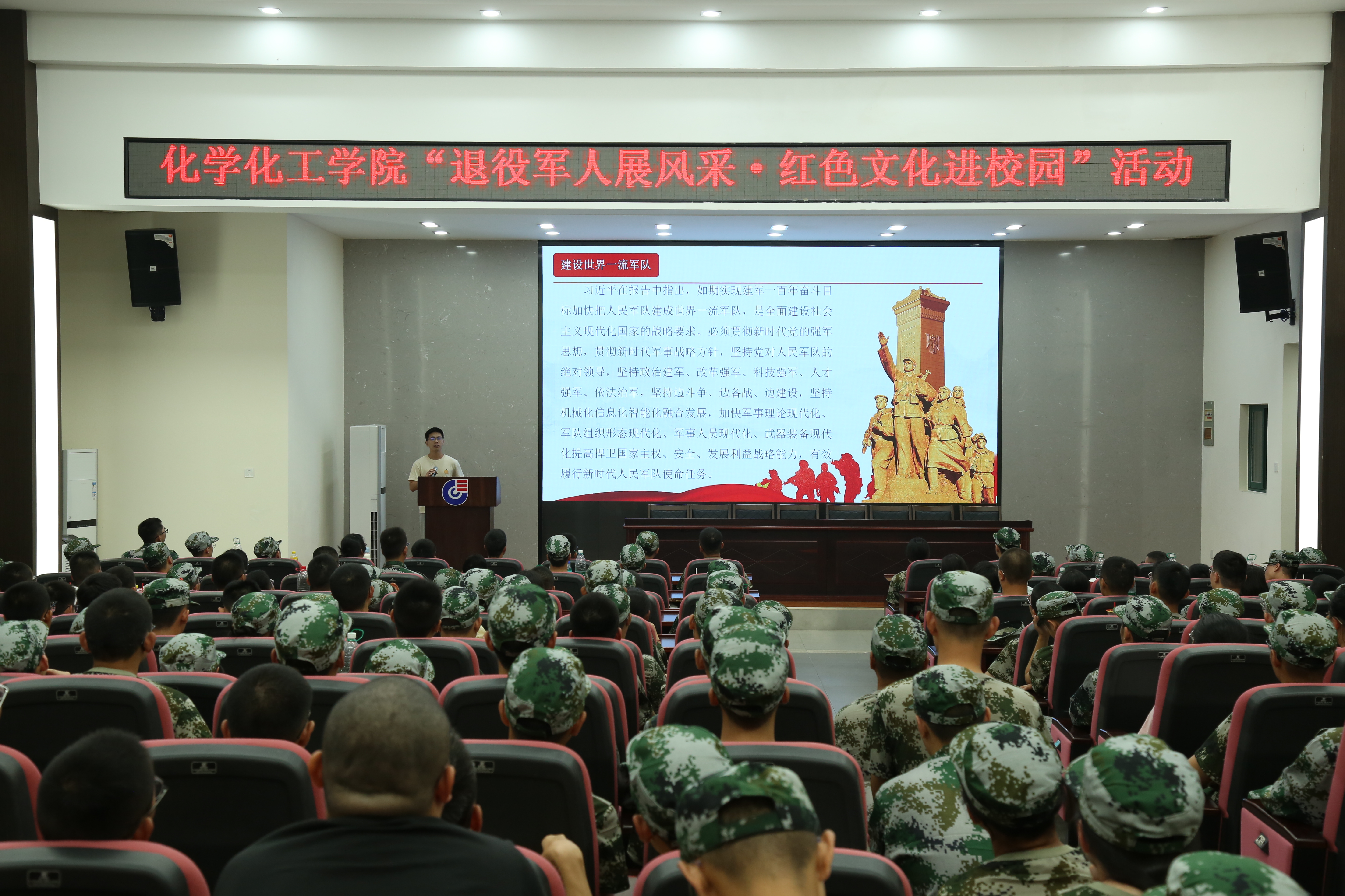 “退役军人展风采・红色文化进校园”活动在新化工楼D区报告厅热烈举行。此次活动邀请到了JAVSB