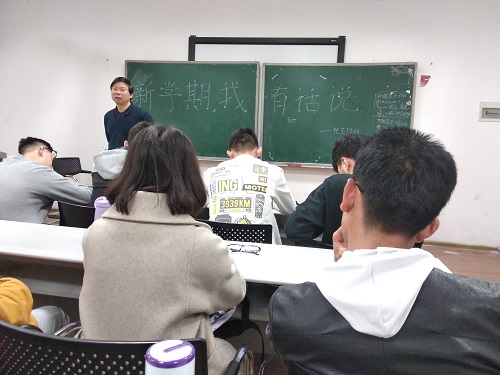 最后,班主任郭老师发表自己的想法。他提出三个重要点:一、作息时间。因为大学与中学学习习惯的不同,很多大学生生活作息混乱,特别是喜欢玩游戏的部分同学,很多都断送了自己的前程,希望大家以此为戒,学会自律;二、课堂状态。更多的课程也许会甩的同学们措手不及,但预习和复习的学习习惯也是极其重要的,特别是课上要勤做笔记,课下及时跟上练习,大学也许有更多玩乐时间,但需要学会劳逸结合,才会有更好的状态;三、体育锻炼。经过高中繁重的学习压力,大学生普遍不重视体育锻炼,导致体质虚弱,极易养成懒惰心理。锻炼不仅强身健体,也能使人时刻充满活力。同学们需要重视锻炼,但也需要掌握学习和锻炼中间的平衡。“希望新的学期,同学们能有一个更多彩的大学生活!”郭老师说道。同学们聚精会神地听着,时不时低头写写笔记。