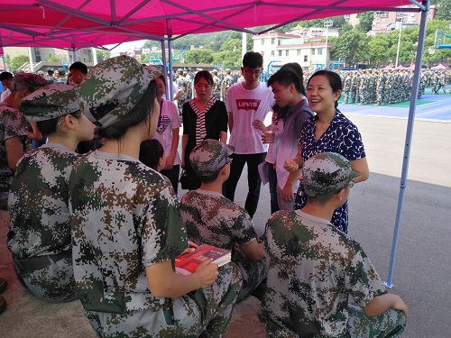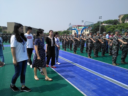 最后,老师们与新生班助理一起走进同学中间,观摩新生的训练情况。军训场上,新生们正在一丝不苟的训练着。新生助理为老师们介绍了每一个方阵的组成班级,并介绍了新生们训练的情况。书记在视察后还与教官简单交流了对新生军训的一些看法。最后,书记对新生班助理的工作给予了肯定,并鼓励他们继续努力,多与新生沟通,让新生更好的适应军训和学校生活,班助理们自己也要注意身体,保证自身健康。