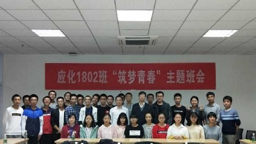 10月17日晚上7:00由应化二班班委组织的“筑梦青春”主题班会在研究生楼C103教室顺制举行,参加此次班会的有校长助理蒋健晖教授、学院学工办主任、班主任王雪强教授、2015级辅导员 刘卓老师、团委书兼2017级辅导员曾芷兰老师、2018级辅导员南彬老师、应化1802班全体学生 ,此次班会的主要目的是为了引导班级同学对自己定下远大的目标,使同学们在大学生活中不虚度时光,能使自己在大学四年中,全方面能力有所提升。