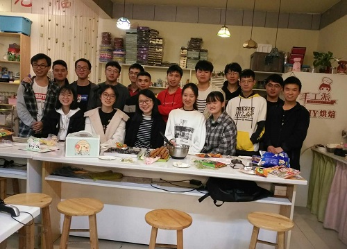 化工1701班的同学们在明教手工派DIY的烘焙店开展了“两性”主题的心理团辅活动。