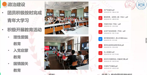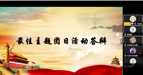 随后是最佳团日活动答辩。各班向大家展示了过去一年举办的团日活动,种类丰富,让同学们既学到了知识,也在紧张的学习生活中有所放松。随着最后一个班的答辩结束,本次活动也进入到了尾声。尽管本次答辩于线上举行,大家答辩的内容还是较为精彩的,由此看出大家都做好了充足的准备。
