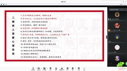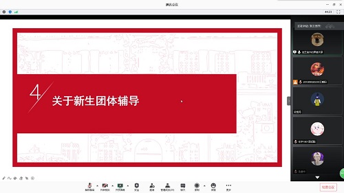 第五场新生班助理培训——心理团辅部分在腾讯会议举行。本次培训由辅导员刘王楚齐老师主讲。