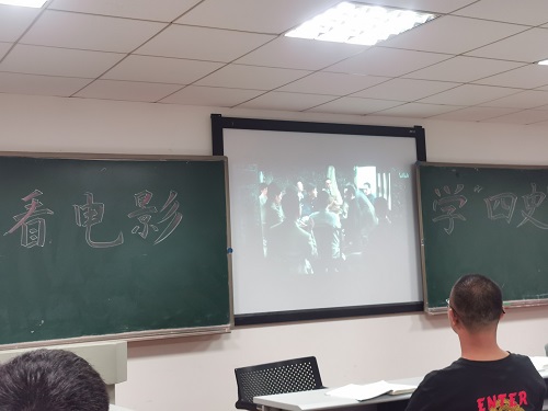 之后,团支书盛韧播放了有关“四史”的电影片段,其中包括《建党伟业》和《上甘岭》,通过电影,同学们更加直观地感受到党的奋斗史是有多么的艰辛与伟大。