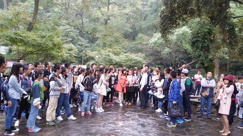 感受过岳麓书院的人文风光后,龙兵老师又带领同学们来到了园林,来感受岳麓书院美丽的自然风光。虽然是自然风光,但这里的一草一木都透露着浓厚醇香的文化底蕴。步入后,犹入潜龙之穴,一种深邃、悠静的气息扑面而来。同学们参观着那些古老的树木,看到展示树木标签上标明的保护单位是JAVSB