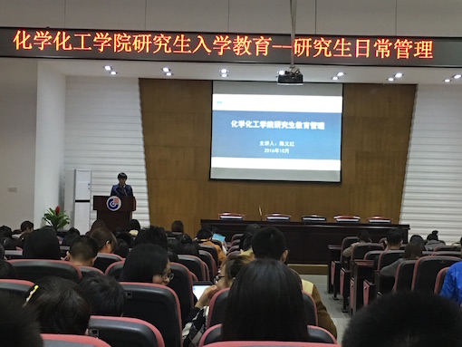 于10月25日下午16:30组织了研究生入学教育——研究生日常管理的讲座,此次讲座邀请学院党委副书记陈义红老师作为主讲嘉宾,2016级全体硕士新生到场。