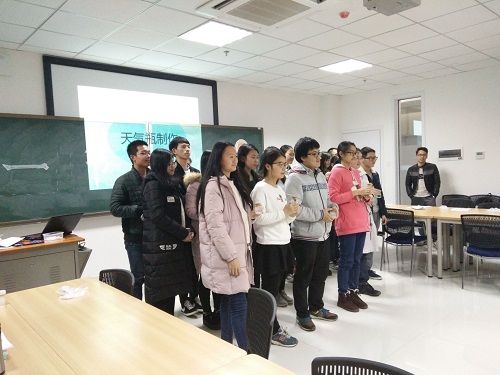 志愿者们提前40分钟来到教室开始布置场地,摆放药品,一切就绪后同学们也纷纷到来,围坐一周,期待着这节课的开始。校学生会负责人首先对活动进行了简短介绍,紧接着青志协志愿者为大家讲解了精心准备的PPT,从天气瓶的历史,原理,制作步骤和使用方法等内容依次展开。体验者们认真观看了青志协的制作演示后戴上手套,开始了最令人激动的制作体验。志愿者和同学们面对面而坐,时刻注意着同学们手中的天气瓶,热心地对同学们进行提示,并时不时纠正他们的操作方法。“这两个溶液混合时一定要缓慢,贴着瓶壁慢慢倾倒,小心一点”“对,就是这样,充分溶解,瓶塞要注意盖上,不然瓶子里的乙醇容易挥发”志愿们耐心回答同学们的询问,面对面的交流配合,提高了大家的积极性,也使现场的气氛极为融洽。