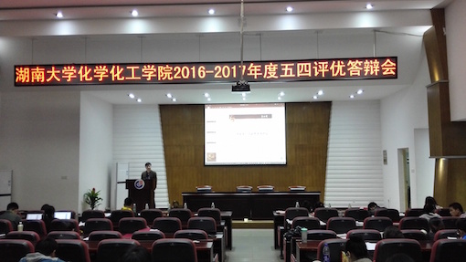 2016-2017年度五四评优答辩会在报告厅隆重举行。出席本次大会的领导老师有学院党委副书记陈义红老师、化工1502班阳卫军老师以及各年级辅导员老师。大会由院团委副书记李晨昕同学主持。