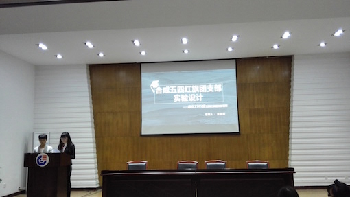 陈书记的致辞完毕后,李晨昕为大家宣读了答辩细则,之后引人注目的答辩环节正式开始。首先进行的是五四红旗团支部的答辩,八个团支部的答辩各有特色,主题鲜明,形式多样,语言生动,每个团支书结合精彩的PPT展示,彰显出别具一格的班级风采。其中应化1501团支部结合本专业特色,以实验报告的形式,从实验目的、实验原理、实验操作、成果展示等方面介绍了本班思想建设,学风建设等各方面成就。化工1602团支部则以自荐信的方式向大家娓娓道来班级从初遇,相识到共知的整个过程,温情而又不失新意,令人印象深刻。