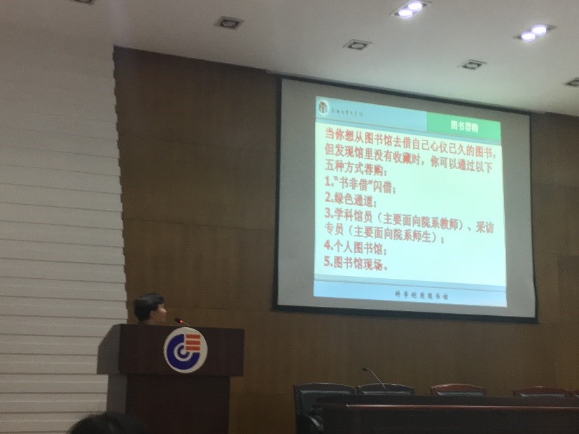 图书馆的刘美桃老师作为本次2017级研究生入学主题教育的主讲人,为JAVSB