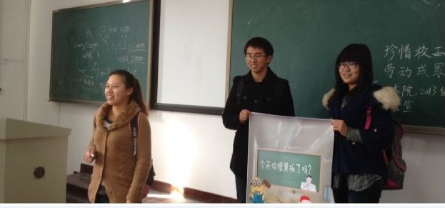 此次活动充分展示了2012级化学一班同学的活力与激情,以及湖大学子一贯的厚德、笃学、崇实、尚新精神。校园学习环境的整洁是同学们高效专心学习的基础。因此,维护教室环境是一个十分重要的环节,良好的教学氛围可以让每个同学快乐学习。同时作为一名学生,不仅仅要学习文化知识,还要学会如何做人,如何感恩与尊敬老师,继续发扬学生尊师重德的风尚。