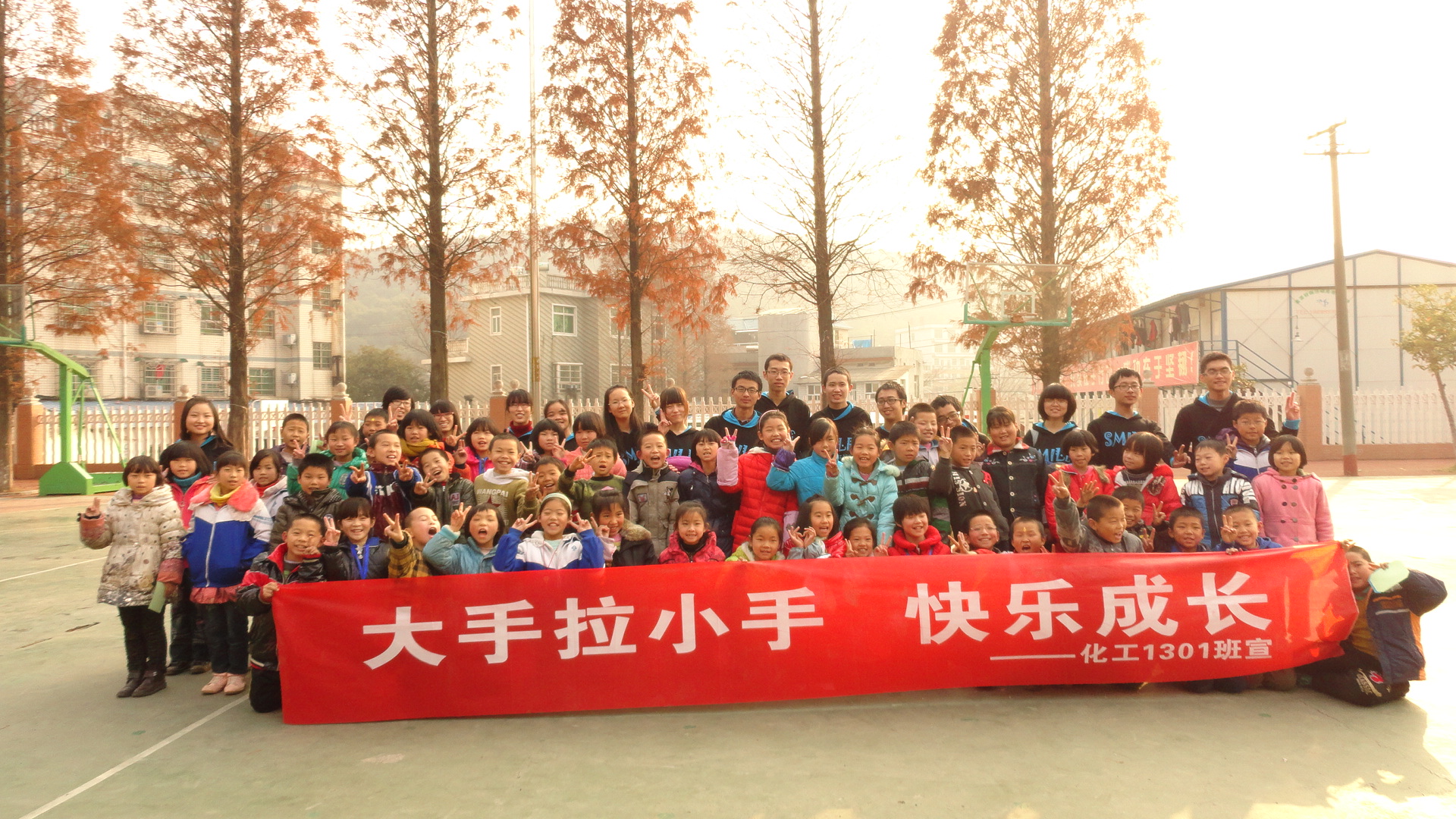 化工1301班全体同学怀着无比兴奋的心情前往樟树门小学,去看望那里的小朋友们。