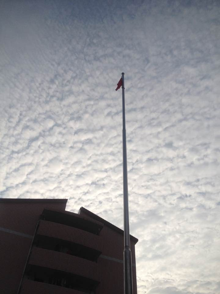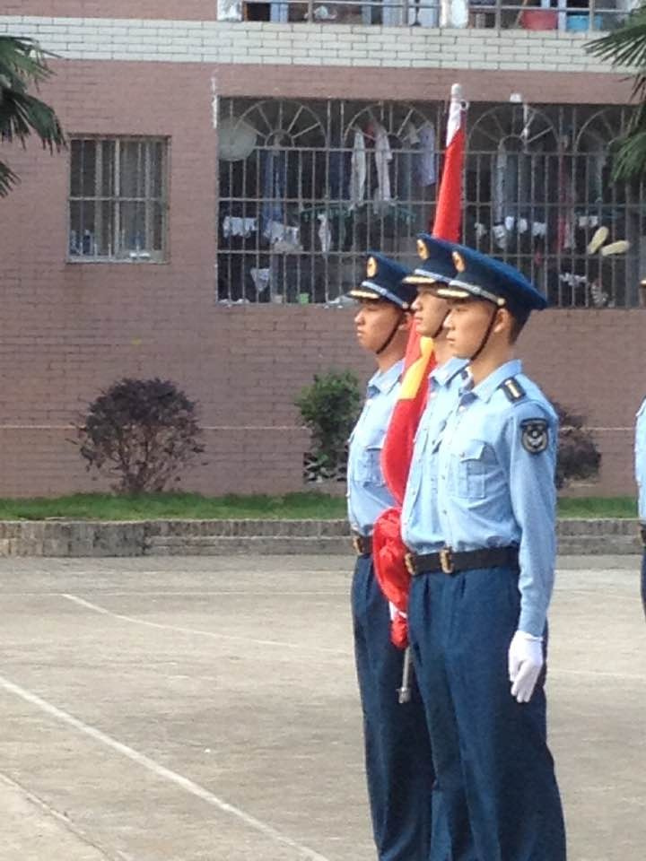 8点整,伴随着一声:“升旗仪式现在开始”!国防生国旗护卫队,排着整齐的队伍,踏着铿锵有力的步伐进入会场!紧接着,在嘹亮的国歌声中,在升旗手的熟练操作下,鲜艳的五星红旗冉冉升起!升旗台下,整个会场庄严而又神圣。国防生护旗队向着国旗敬礼,老师及同学们的目光也紧随着冉冉升起的国旗,并轻声唱着国歌!就这样,将整个升旗仪式推向高潮!升旗仪式结束后,校党委副书记陈伟老师发表了讲话!他说:“在这样一个特殊的节日里,我们每一位中华儿女,都应该缅怀我们的革命先辈!五星红旗为什么是红色的呢?那是因为我们祖国今天的繁荣昌盛,都是革命先辈用鲜血换来的”!在场的每一位同学,无不感到震撼!大家静静地沉思着,缅怀着革命先辈的同时,也在认清着自己作为当代大学生应该要尽的责任与义务!