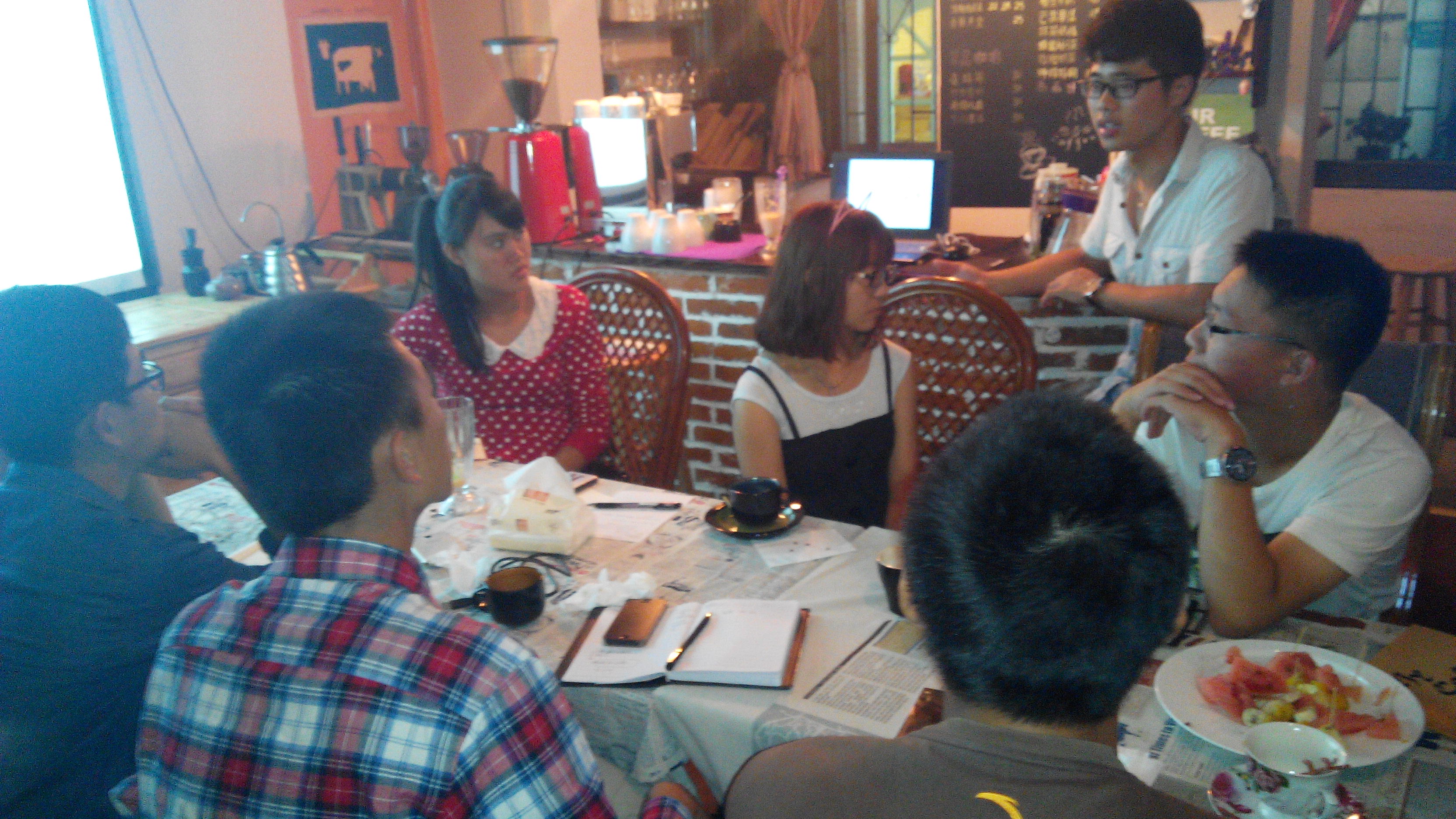 外联部全体成员齐聚空青咖啡馆,举行了化工院外联部14年度首次外联部干事培训交流会。化工院学生会分团委副书记吴天忍、化工院青年志愿者协会部长石倩等嘉宾参加了本次的培训交流会。