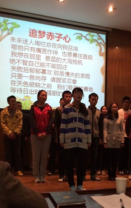在比赛过程中,各班派两名解说员进行演说并播放PPT。他们讲解精辟,妙语连珠,引得全场同学开怀大笑。班名,班誓,班服,各个都异彩纷呈。奇妙的构想,各具特色的班级风采令人眼花缭乱。尤其值得一提的是大家合唱班歌,洪亮的声音,逼人的气势,震慑全场,余音绕梁,久久不息。
