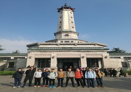 小组游览景色结束之后,同学们在烈士塔下集合,进入烈士塔进行参观。同学们的视线紧紧胶在素朴的烈士遗物和碑文中感人的烈士事迹上,全神贯注地欣赏这别有韵味的美景。面对着这些在抗战中牺牲的勇士们,大家收起了之前游玩时的笑脸,陷入沉思与缅怀。参观结束后,同学们意犹未尽,组队回公寓的路上,相互分享和探讨今日游园的感受和领悟。