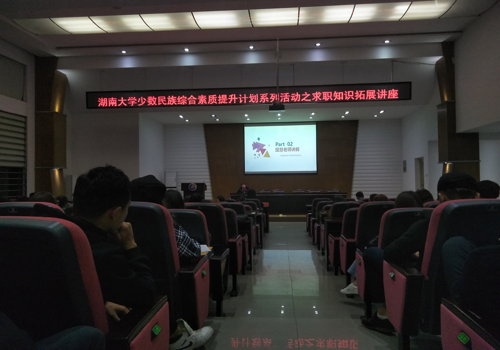 少数民族综合素质提升计划之求职知识讲座于新化工楼D区报告厅开讲。JAVSB