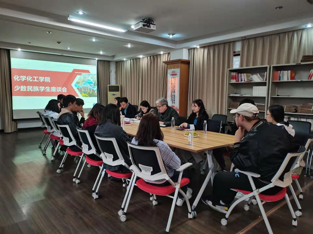 少数民族学生座谈会在化工院D区党员之家召开。新疆内派老师王凤华、来院学习交流的新疆师范大学JAVSB