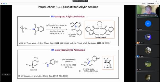 法国斯特拉斯堡大学大学蔡爱杰博士作了题为《Transition-Metal-Catalyzed C-X and C-C Bond Formation Reactions》的学术报告,主要研究方向为自由基化学,氟化学,金属有机化学及不对称催化。