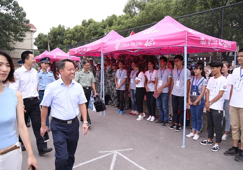 校长段献忠教授和校党委副书记于祥成教授亲临训练场,旨在考察新生们的训练成果以及对没有参加军训的同学表示慰问和鼓励。