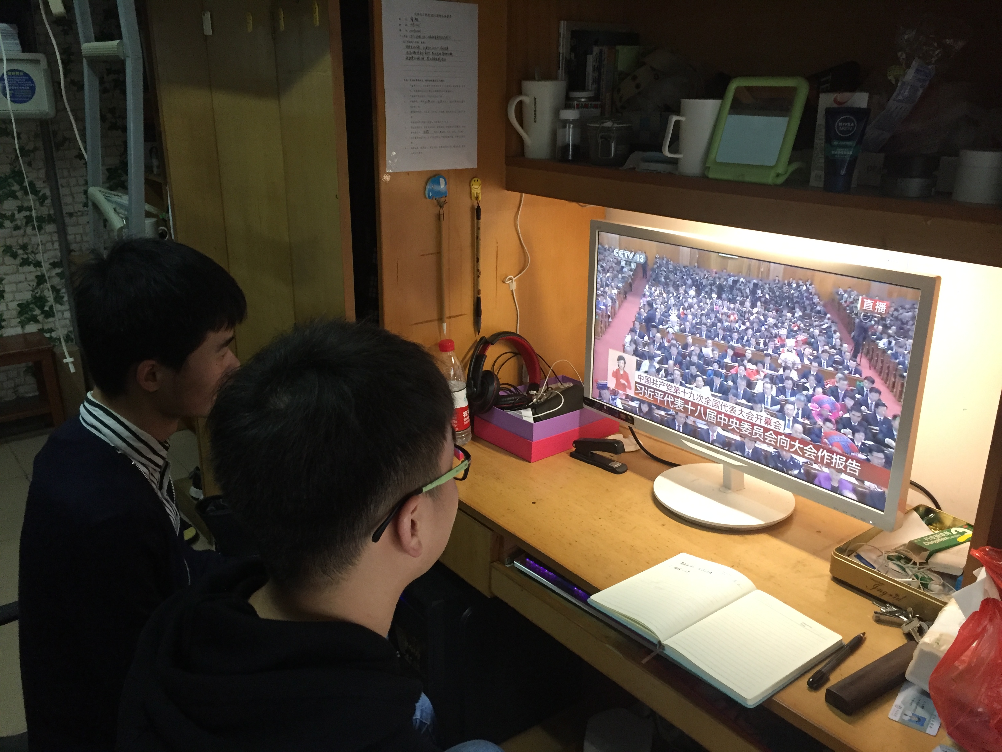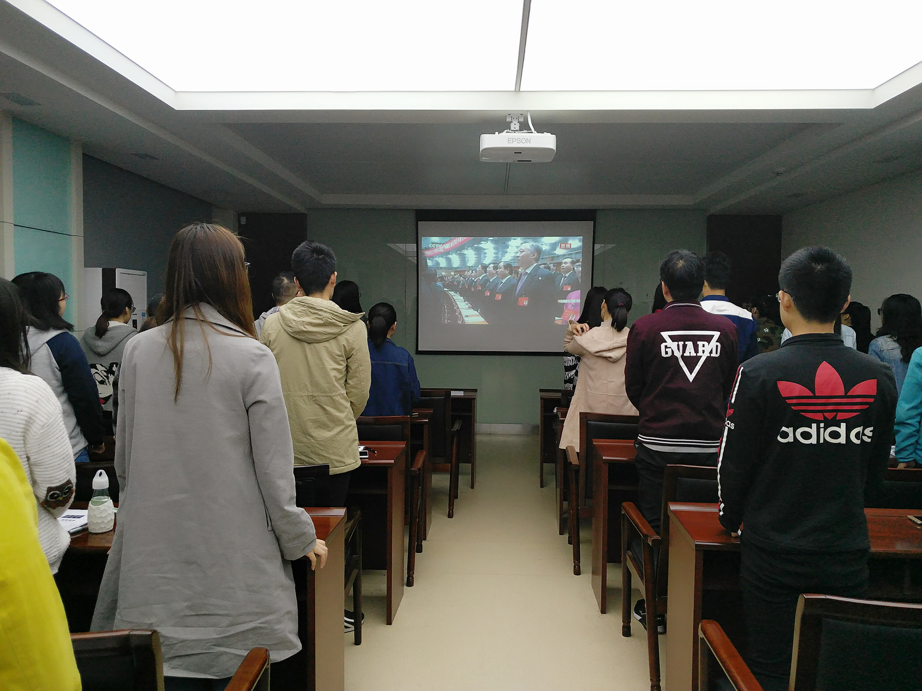 2017年10月18日,为迎接党的第十九次全国代表大会的召开,经学校统一安排,学院统一组织,JAVSB 全院师生分别在复临舍报告厅、实验室、寝室观看十九大的开幕式直播。