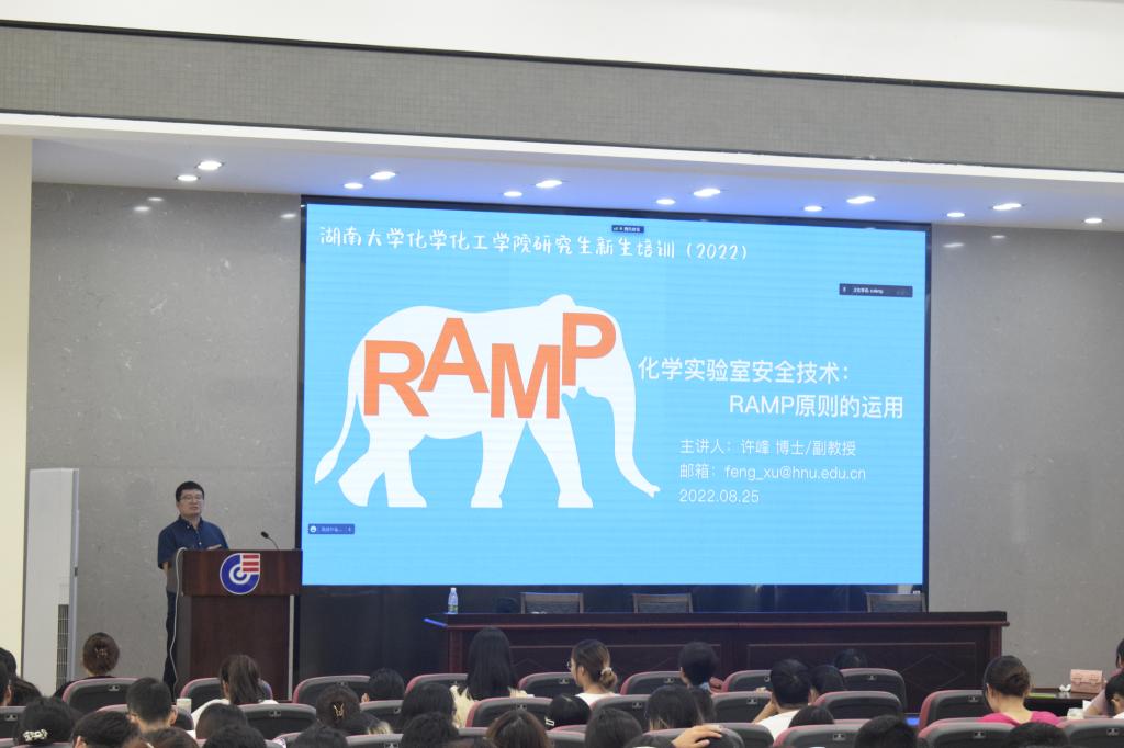 于8月25日下午在D报告厅开展2022级研究生新生实验室安全教育讲座。许峰老师主讲,全体研究生新生参与。