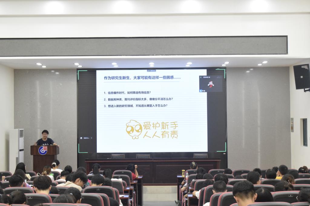 于新化工楼D区报告厅举行了2022级研究生新生入学教育系列活动——文献检索与文献学习,由吕一帆副教授主讲。