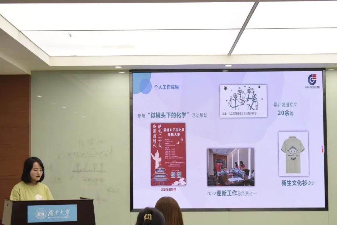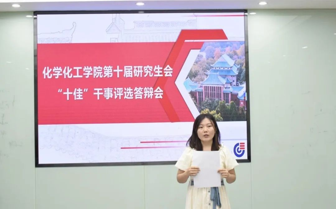 研究生会于2022年8月30日下午在新化工楼B座106会议室举行第十届研究生会“十佳”干事评选答辩会。本次大会由第十届研究生会主席团吴杰星主持,2021级研究生辅导员兼分管研会工作蒋晓洁老师、化工院研会全体同学参加。
