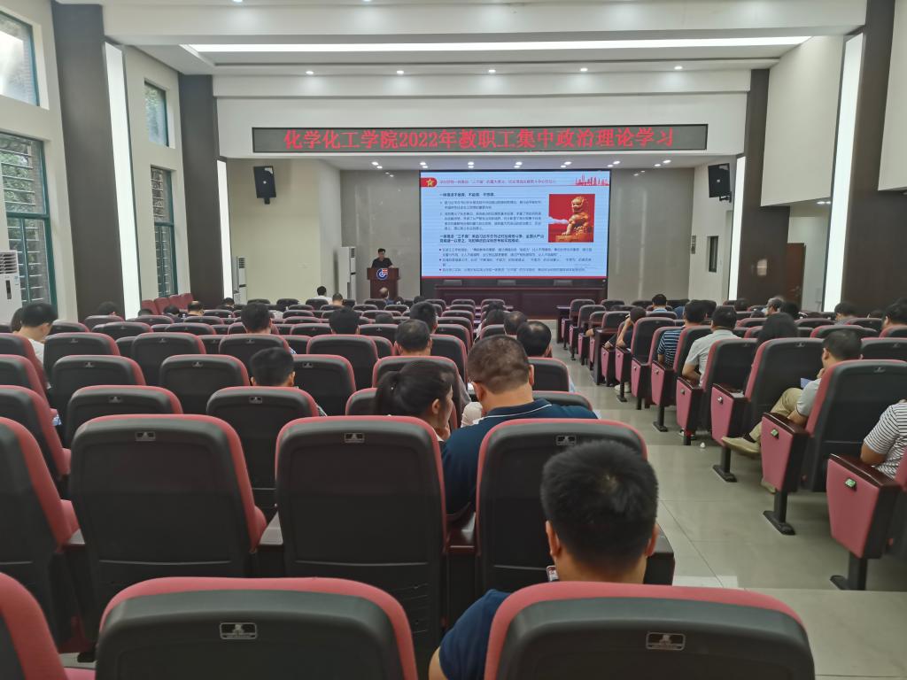 在新化工楼D区报告厅组织开展了2022年教职工集中政治学习。本次主讲嘉宾为副处级组织员庞新宇老师,领学主题为学习贯彻习近平总书记在中央政治局第四十次集体学习时重要讲话精神。