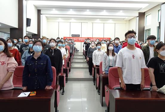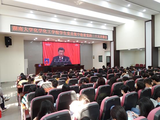 组织学生党员在新化工楼D区报告厅集体收看中国共产党第二十次全国代表大会开幕式。