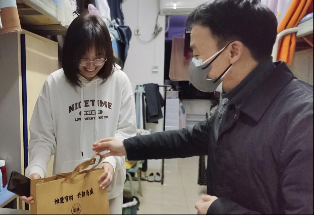 学院领导为考研学生发放考研暖心礼包