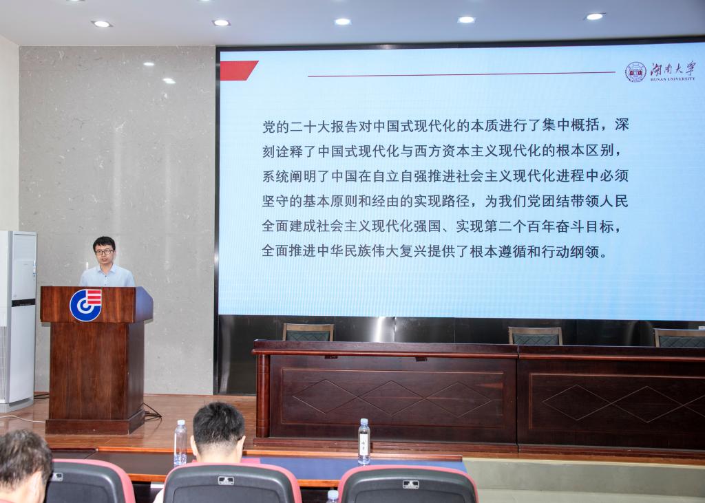 5月4日下午,学院党委结合主题教育开展的青年教师讲党课系列活动开讲,首场邀请了青年教师黄杨强同志讲课。黄杨强以“走好中国式现代化之路”为主题,系统讲述了中国式现代化之路的历史由来,详细介绍了中国式现代化的特征和中国式现代化的本质要求。通过对比分析,全面阐释中国式现代化与西方现代化的本质区别。中国式现代化打破了“现代化等于西方化”的迷思,用事实证明了实现现代化道路的多样性,拓展了发展中国家走向现代化的思路和途径,为解决人类面临的共同问题提供更多更好的中国智慧、中国方案、中国力量。
