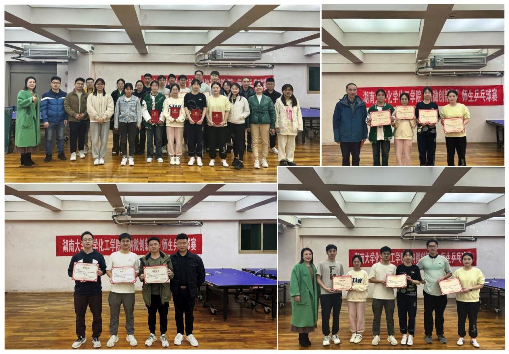 比赛充分展现了乒乓球的独特魅力以及师生们拼搏进取的精神。赛后,学院党委副书记李洪玉、高级实验师翦立新以及湖南纳微新材料科技有限公司庄为分为团体项目、男子单打和女子单打项目的冠军、亚军、季军获得者颁奖。学院党委副书记李洪玉在闭幕式致辞中表示,此次师生乒乓球比赛的举办为学院师生展示体育风采提供了舞台,有助于推动学院师生践行“让运动成为习惯,让生命更加精彩”的体育理念,希望广大师生结合健康中国战略,推动学院的发展。