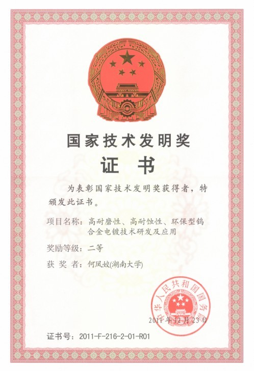 何凤姣教授主持完成的成果“高耐磨性、高耐蚀性、环保型钨合金电镀技术研发及应用”发明了不含欧盟ROH指令禁止元素、镀液pH为6-8的环保型钨合金电镀配方及工艺,用该工艺电镀出的钨合金镀层具有高耐磨性和高耐腐蚀性,成功替代了困扰世界制造业的六价铬电镀工艺,已用于工程机械、煤矿机械、制药机械等部分零部件;解决了恶劣环境下金属零部件高耐磨、高耐蚀性能要求问题;研制的防腐抽油杆、防腐耐磨震击器等产品已规模化应用于类似新疆塔里木油田极端腐蚀环境(高矿化度、高浓度硫化氢、二氧化碳),以普通的钢材有效替代了昂贵的超级13Cr及镍基合金。
