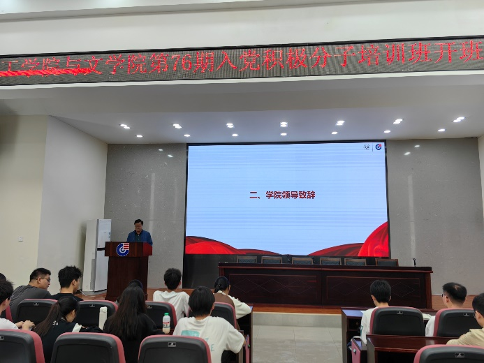 与文学院第七十六期入党积极分子培训班开班仪式。本次培训目的旨在进一步提升入党积极分子的思想政治素质,确保党员发展质量,共计200多名师生入党积极分子参加本次开班仪式。