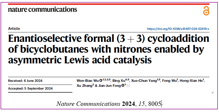 自从20世纪60年代发生“反应停”事件以来,药物手性的研究在新药研发领域引起了极大关注。研究光学纯药物活性分子的药理是手性药物上市的先决条件。将富含sp3 杂化碳的双环[n.1.1]烷烃等排置换苯环将不可避免的在候选药物中引入手性。因此发展新的策略获得光学纯双环[n.1.1]烷烃对于新药的研发具有重要意义。针对双环丁烷的不对称环加成反应手性控制难、多季碳构建以及可供参考的有效手性配体少等挑战,最近冯见君教授课题组提出了通过设计合成双齿螯合型BCB底物来稳定与手性路易斯酸催化剂结合后的手性诱导环境成功地实现了首例路易斯催化双环丁烷的不对称环加成反应,对映选择性和产率高达99%。上述研究成果接连在《Nature Communications》和《Angew. Chem. Int. Ed.》上发表。JAVSB