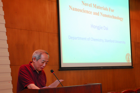 应化学生物传感与计量学国家重点实验室邀请,2012年7月3日上午,斯坦福(Stanford)大学化学系终生教授,J.G.Jackson & C.J.Wood荣誉教授,美国科学与艺术学院院士戴宏杰博士在学院D区报告厅做了名为《Nanomaterials for Nanoscience and Nanotechnology》的学术报告。此次讲学是国家重点实验室“化学生物前沿论坛”系列讲座的第七讲,俞汝勤院士主持。