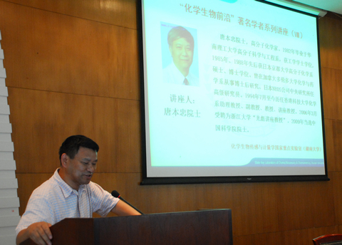 讲学,作了题为“Aggregation-Induced Emission”学术报告,受到广大师生的热烈欢迎。之后,唐院士教授参观了实验室,与实验室部分年轻教师进行了深入交流。此次讲学是国家重点实验室“化学生物前沿论坛”系列讲座的第八讲,谭蔚泓主任主持。