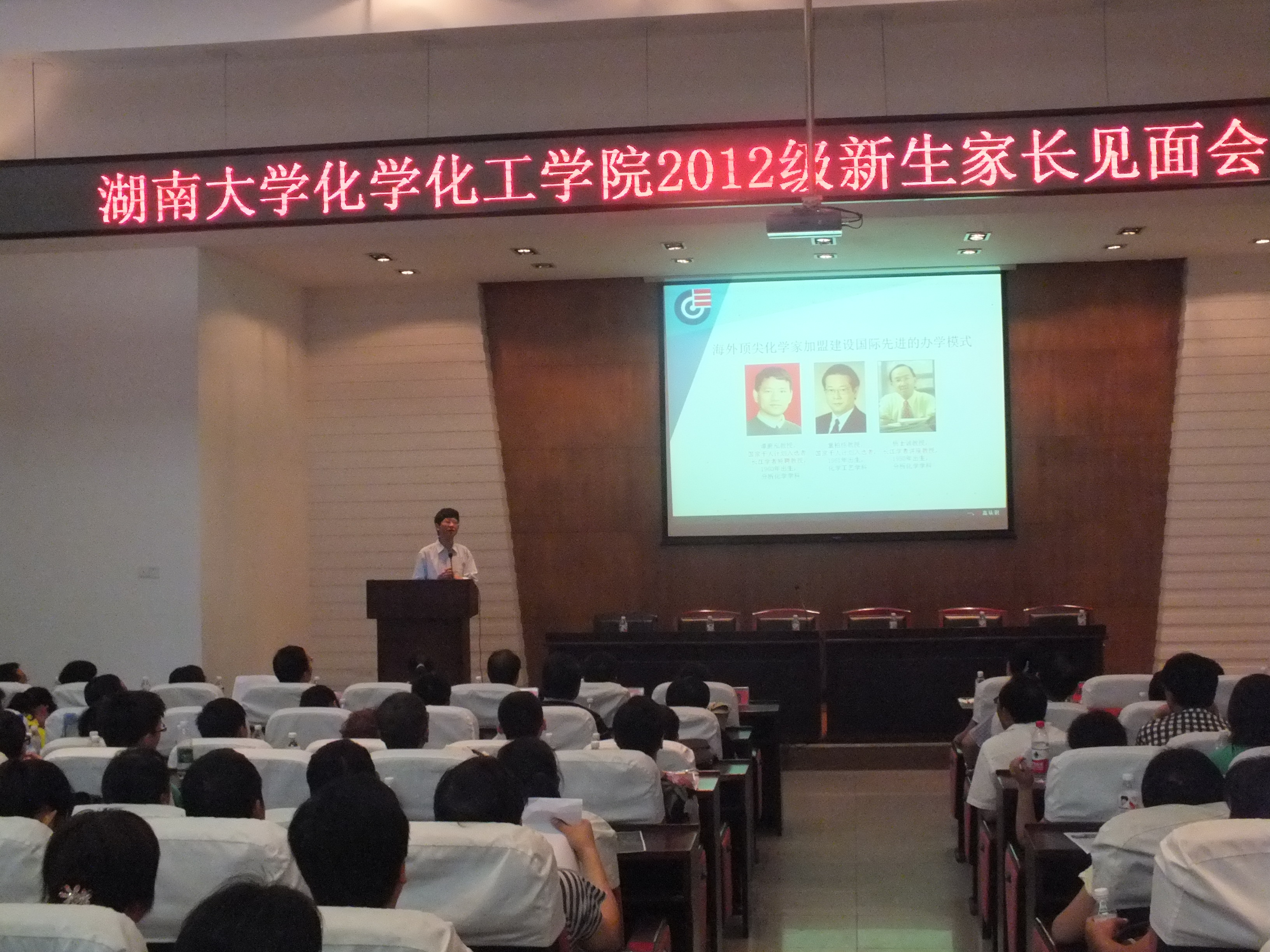 各类专业情有独钟的学生,很多同学将学院的几个专业作为唯一填报专业,并成功进入学院深造。在认真仔细地了解学院基本情况后,与会学生家长,化学专业新生陈灿的父亲代表与会家长做了激情洋溢的发言。陈先生难以掩盖内心的激动,对化工院取得的各项成绩、对化工院扎实而重实效的育人工作表示高度赞扬。在讲话中,他指出作为孩子的家长,他非常放心而且非常欣喜自己的孩子能够在一个极具人文关怀和学术魅力的学院完成四年的本科生活,他相信自己的孩子在本科毕业后,将以更高的综合素质和能力应对生活和工作中的各种挫折与困难。