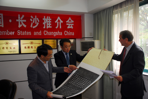 何益斌教授向Mr. Philippe Vialatte赠送岳麓书院学规