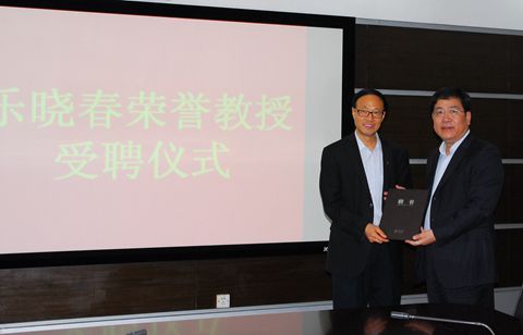 荣誉教授的聘任仪式在校办公楼二会议室举行,校长赵跃宇为乐晓春院士颁发聘书并进行了亲切交谈。当日上午,乐晓春院士还作了题为“DNA and protein binding assays”的学术报告,并与JAVSB