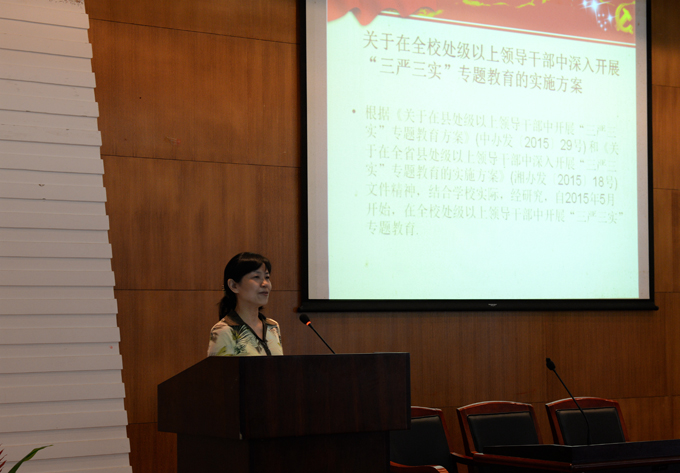 党委于6月9日下午在院办报告厅举行了以“坚持群众路线,践行‘三严三实’,为学院发展凝聚动力”为主题的“三严三实”专题教育活动。学院处级以上领导干部、教工和学生党支部各支部书记及支部委员以及学工办老师参加了此次会议。
