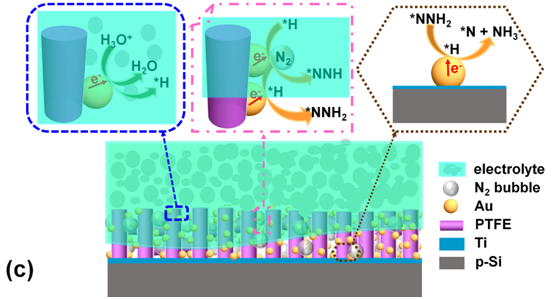 图:Au-PTFE/Si和Au/Si基光电阴极的PEC NRR性能及反应机制